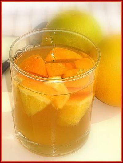Cam cắt nhỏ, dùng luôn vỏ, cho trà vô ấm pha với 500ml nước sôi, sau đó cho luôn phần cam đã cắt nhỏ vào, đậy nắp khoảng 5 phút và cho mật ong vô khuấy đều là dùng được, nếu thích uống lạnh cho vào tủ lạnh để khoảng 30 phút.