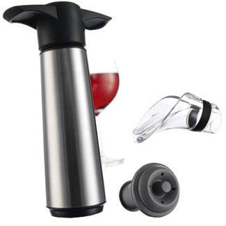 Bộ dụng cụ bảo quản rượu vang này gồm có một bơm tay để rút không khí ra ngoài chai, các nút đậy bằng cao su, hai đầu rót rượu bằng pha lê độc đáo. Đầu rót rượu được thiết kế tinh tế giúp bạn rót rượu một cách khéo léo mà không rớt rượu ra bên ngoài.