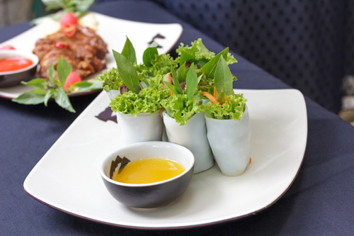 Phở Cuốn Vịt Chăn Thả: Bánh phở mềm dai kết hợp hoàn hảo với rau tươi thơm ngon, thịt vịt ngọt mềm, măng rừng giòn giòn, đưa vị bằng nước chấm hương chanh leo đặc trưng của Highway4.
