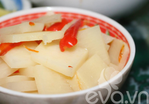 Măng ngâm ở đây rất ngon, chua nhẹ nhưng lại ngọt và cayNgoài bún trộn ngan, ở đây bạn còn có thể gọi bún trộn lòng mề. Cách trộn cũng tương tự như trên nhưng có sức hút riêng bởi lòng mề rất giòn, lại có chút dai dai, cũng có thú riêng của nó.