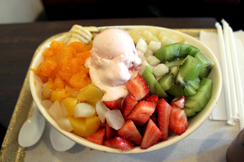 Patbingsu hoa quả là món ăn ngon miệng và giải nhiệt hiệu quả trong mùa hè. Một bát patbingsu có giá khoảng 30.000-40.000 đồng