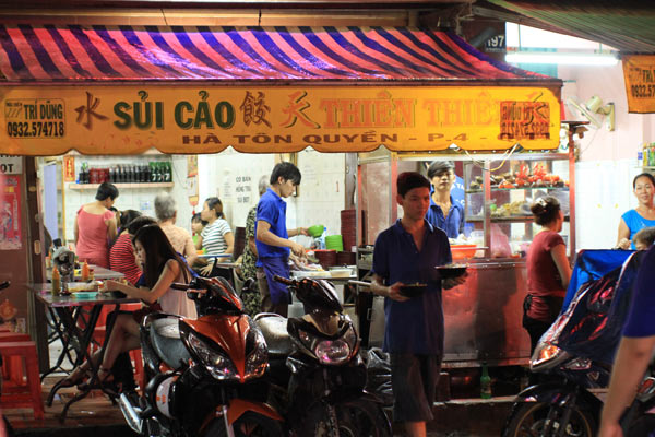 Không biết từ lúc nào nhưng nếu nhắc đến sủi cảo ở Sài Gòn thì nhiều người sẽ nghĩ ngay đến con đường Hà Tôn Quyền (quận 11). Chỉ bán duy nhất một món sủi cảo nhưng nhờ cách chế biến thơm ngon, lại được pha trộn với nhiều nguyên liệu gia truyền khác mà món sủi cảo ở đây trở nên ngon miệng và không tạo cảm giác ngấy khi thưởng thức. Vì thế nên không ngạc nhiên khi ngay từ đầu buổi chiều, các quán ăn ở đây đã tấp nập thực khách đến để thưởng thức những bát sủi cảo nóng hổi, đầy hấp dẫn.