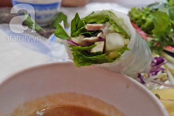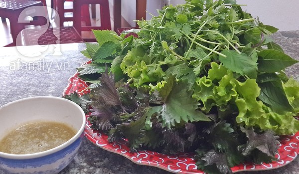 Các loại rau ăn kèm khá phong phú như xà lách, rau mùi, húng quế, tía tô, kinh giới, diếp cá…