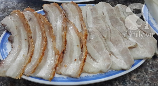 Thịt được luộc vừa tới, phần mỡ trở trong, phần thịt trắng nõn nà, phần bì mềm