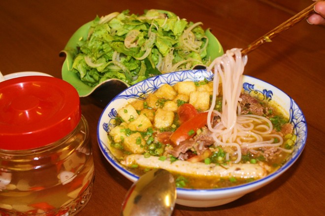 Những sợi bún mềm mại cứ thế theo tay người thưởng thức tan dần trong miệng cộng hưởng với vị giòn giòn của giò tai, ngòn ngọt của thịt bò, thịt cua… vô cùng thú vị.