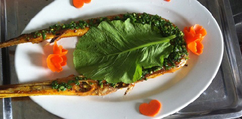 Cá chìa vôi nướng là một loại hải sản cung cấp chất đạm tốt, ít chất béo, có nhiều vitamin như niacin, B6 và khoáng chất như calcium, sắt... giúp tạo hồng cầu và kích hoạt hệ đề kháng (miễn nhiễm). Giá từ 200.000 đồng một con tùy vào trọng lượng
