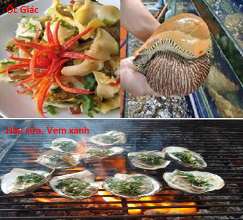 Hàu sữa nướng, vẹm xanh, sò điệp nướng mỡ hành thơm nức. Theo y học cổ truyền, thịt hàu có vị ngọt, tính ấm, có tác dụng tư âm dưỡng huyết, trị mất ngủ do nhiệt, nóng khát, làm đẹp da mặt... Con hàu từ lâu đã được ví là “thực phẩm của tình yêu”, có tác dụng tích cực với khả năng sinh lý của nam giới