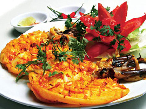 Mực lá Đà Nẵng nướng muối ớt, thơm cay ngọt 120.000 đồng một đĩa