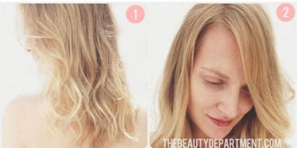 Bước 1: Gội sạch tóc, sấy khô và bạn nên uốn cho mái tóc có độ sóng nhẹ. Sau đó bôi một chút gel mềm lên toàn bộ mái tóc để giữ nếp tóc.