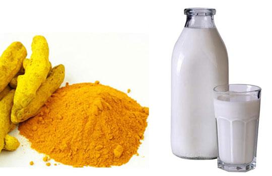 Lấy một lượng sữa vừa đủ và thêm vào đó một chút bột nghệ. Chà xát hỗn hợp này lên vùng da sạm ở khuỷu tay và đầu gối. Để hỗn hợp khô trên da và rửa sạch với nước. Hỗn hợp này rất hiệu quả trong việc giúp vùng da sạm ở đầu gối và khuỷu tay trở nên trắng mịn, vì vậy mà bạn sẽ thấy hiệu quả chỉ sau một thời gian ngắn.