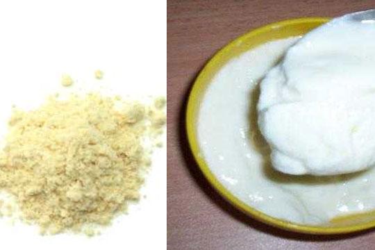 Trộn bột đậu xanh và sữa đông (giống như yaouart bỏ trong tủ lạnh) thành một hỗn hợp mịn. Bôi chúng lên vùng da ở khuỷu tay và đầu gối. Để chúng khô lại, chà xát theo hình tròn và rửa sạch với nước. Chỉ sau vài tuần là vùng da sạm ở khuỷu tay và đâu gối sẽ trở nên sáng mịn.