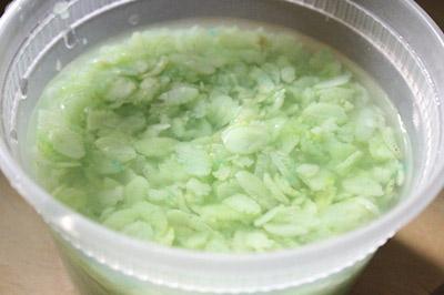 | Bước 2: - Lá nếp rửa sạch thái nhỏ, xay nhuyễn với chút nước, vắt lấy nước cốt. |